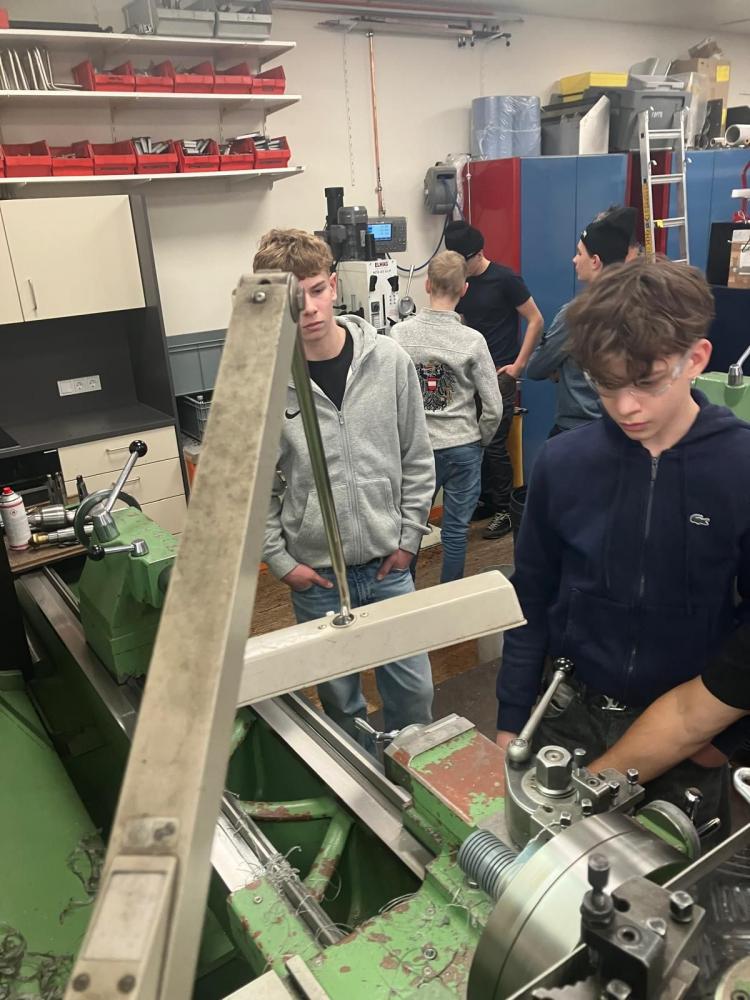 Im Anschluss führte die Exkursion in die verschiedenen Werkstätten, darunter die Metallwerkstätte sowie Bereiche der Maler‑ und Tapeziererarbeiten. Besonders eindrucksvoll waren die unterirdischen Verbindungstunnel, die einen reibungslosen Ablauf im Klinikbetrieb ermöglichen. Ein weiterer Höhepunkt war die Besichtigung der Rohrpostanlage, die als längste ihrer Art in Europa gilt und einen spannenden Einblick in die logistische Infrastruktur bot.