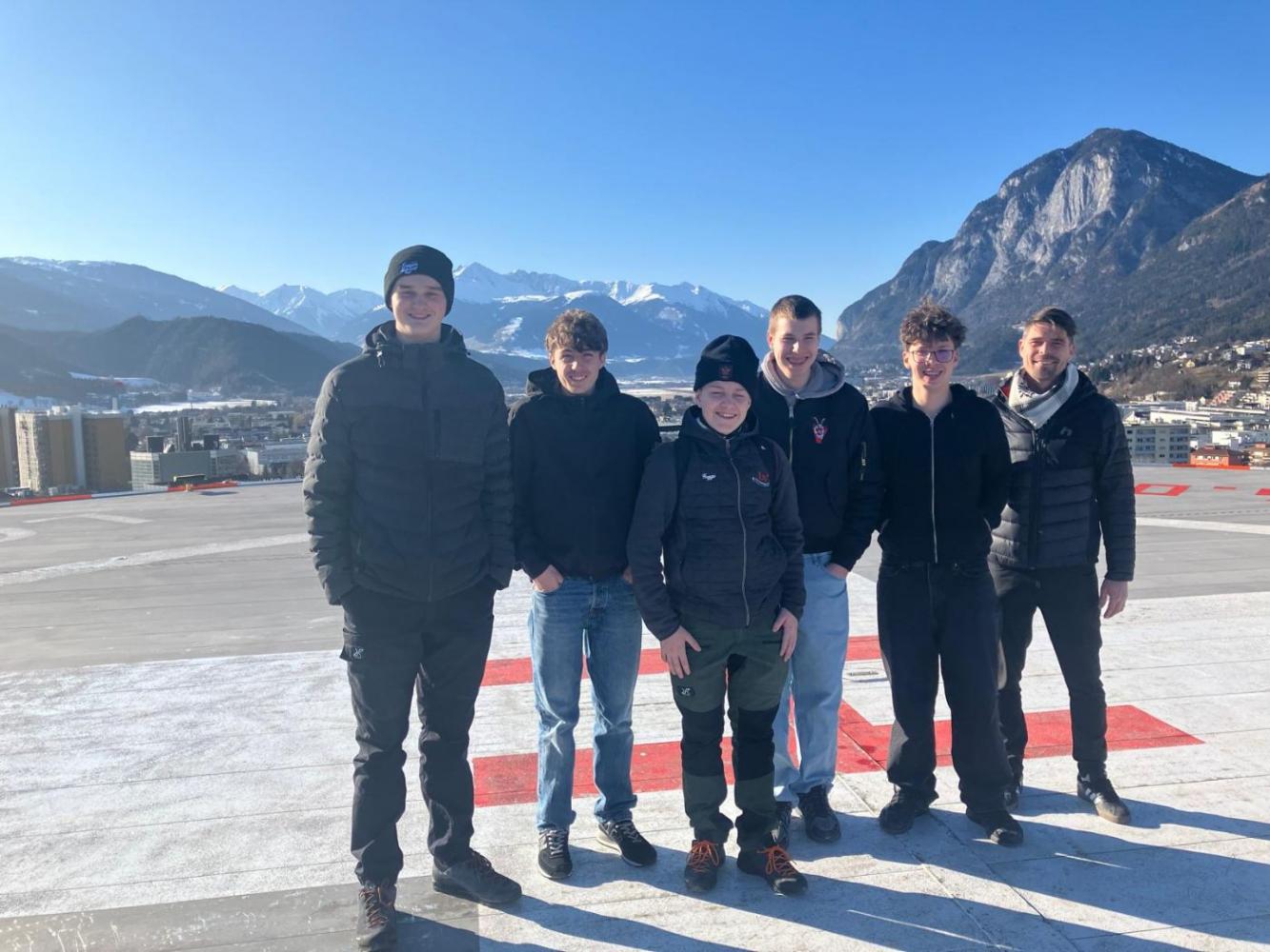 Zum Abschluss besuchte die Gruppe den Hubschrauberlandeplatz auf dem Dach der Chirurgie, der einen imposanten Blick über das Klinikgelände eröffnete. Die Schüler:innen erhielten während des gesamten Besuchs wertvolle Einblicke in mehr als zehn verschiedene Lehrberufe, die in den Tirol Kliniken ausgebildet werden. Besonders interessant war die Information, dass in den Werkstätten, im administrativen Bereich sowie in der größten Küche Westösterreichs regelmäßig Lehrstellen angeboten werden.